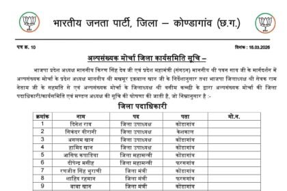 वसीम कच्छी ने घोषित की नई टीम, अल्पसंख्यक मोर्चा जिला कोण्डागांव को…
